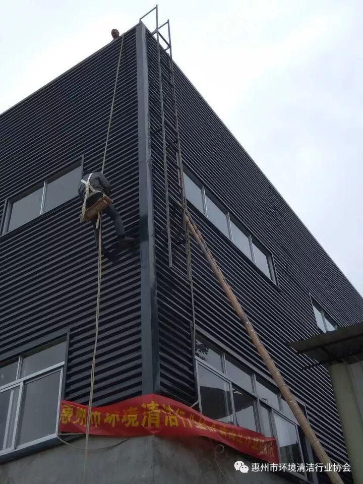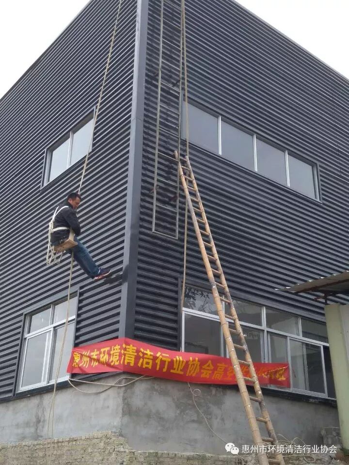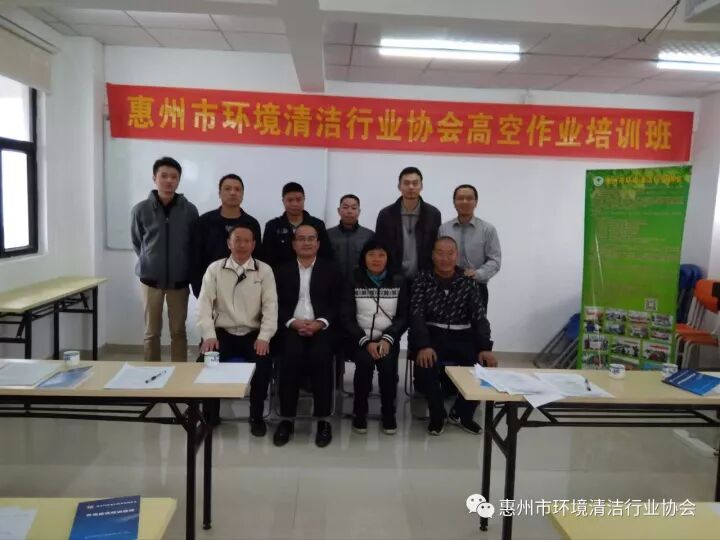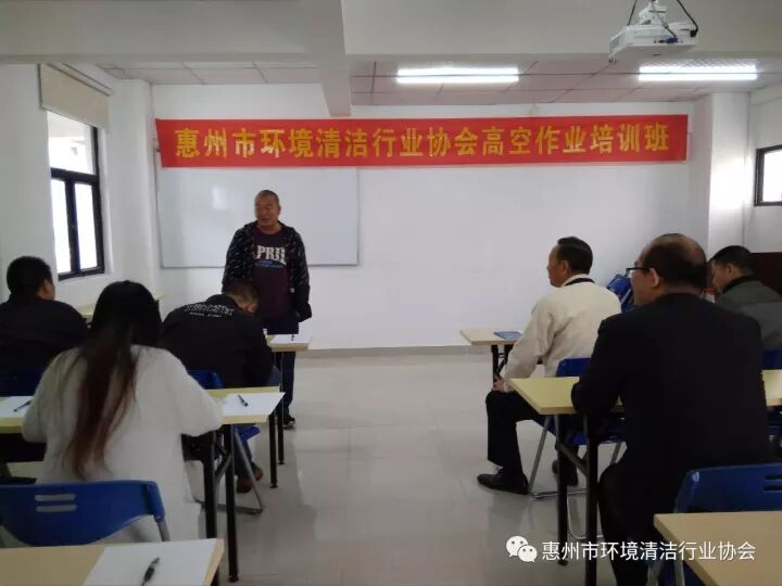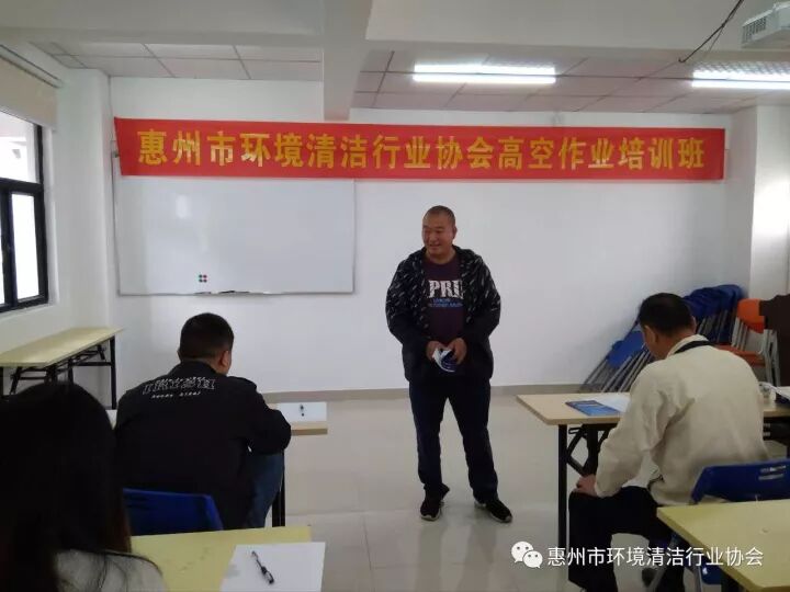 2017年10月24日,惠州市环境清洁行业协会对惠州市清洁行业从事外墙清洗作业人员开展了高空作业培训。